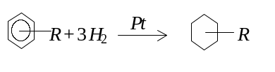 Бензен та його похідні гідруються над нікелевими або платиновими каталізаторами до відповідних циклогексанів: