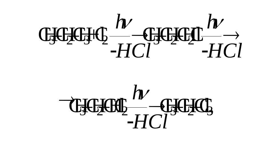 При хлоруванні атоми гідрогену алканів поступово замінюються на хлор з утворенням різноманітних хлорпохідних алканів: