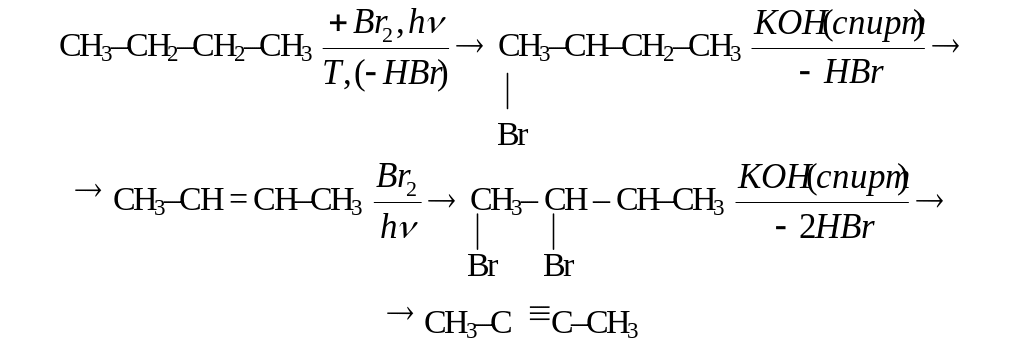 СН3-СН2-СН2-СН3 - бутан СН3-(СН2)7-СН3 - нонан