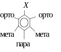Інша система позначення замісників, яку також визнає ІUРАС, заснована на використанні префіксів орто- (1,2-), мета- (1,3) і пара- (1,4), які позначають атоми карбону бензенового ядра відносно С – атома, який має пріоритетний замісник.