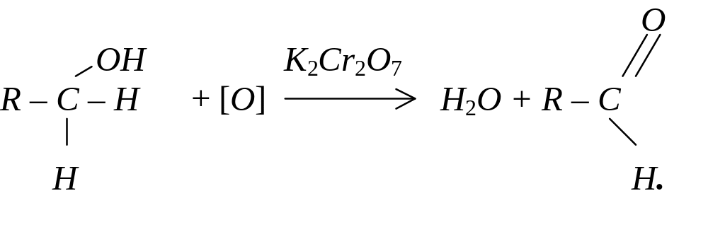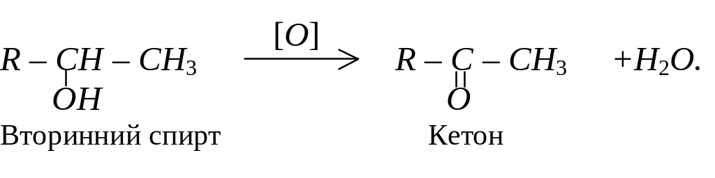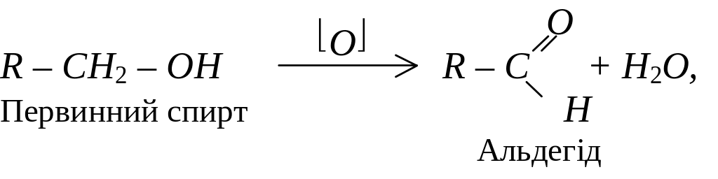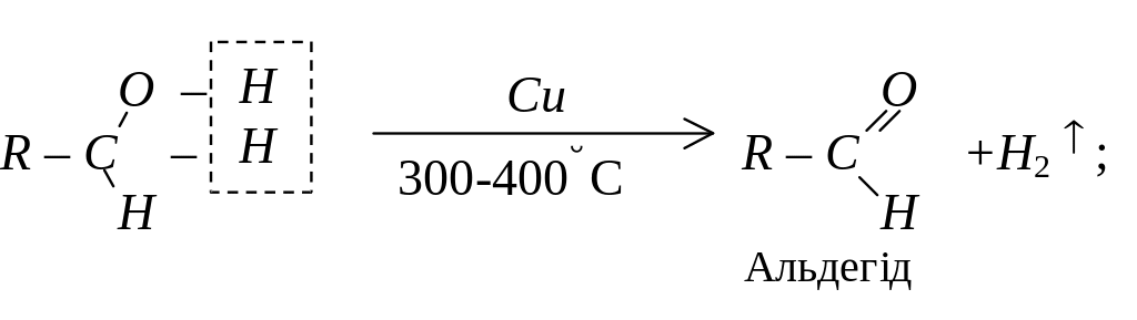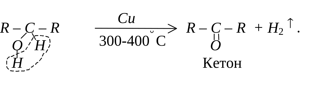При пропусканні пари спирту над нагрітим каталізатором, наприклад, міддю, від спиртів відщеплюється водень, з первинних спиртів при цьому утворюються альдегіди, з вторинних – кетони.
