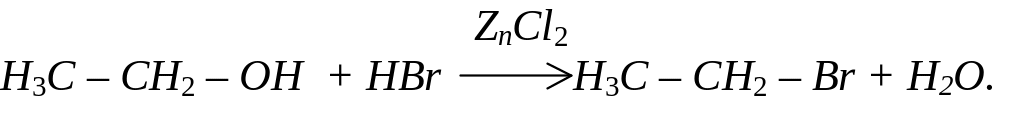За наявності водовіднімаючих засобів спирти реагують з галогеноводнями з утворенням галогенідів: