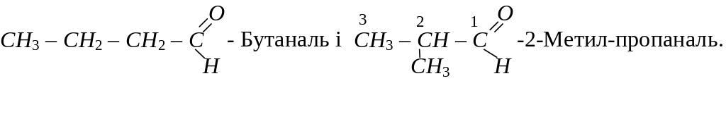 Ізомерія альдегідів пов’язана з розгалуженням карбонового ланцюга радикала і в гомологічному ряду цих сполук починається з четвертого члена ряду: