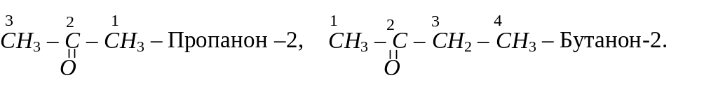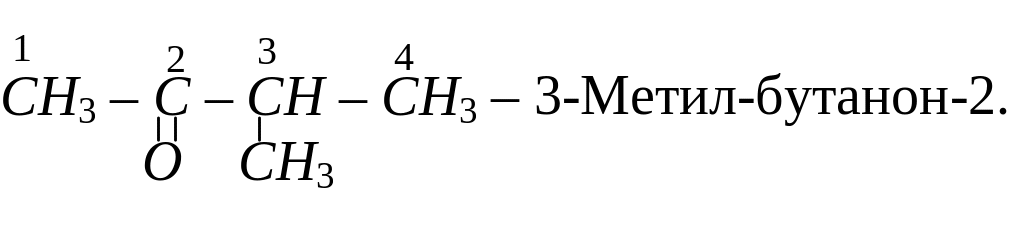 Назву кетонів за систематичною номенклатурою також утворюють з назви відповідного вуглеводню, додаючи до неї суфікс –он. У назві зазначають також номер атома вуглецю, сполученого з карбонільним атомом кисню, наприклад: