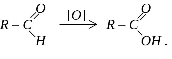 Альдегіди легко окислюються і перетворюються на відповідні карбонові кислоти. У процесі реакції зберігається кількість атомів карбону і структура ланцюга, а альдегідна група перетворюється на карбоксильну: