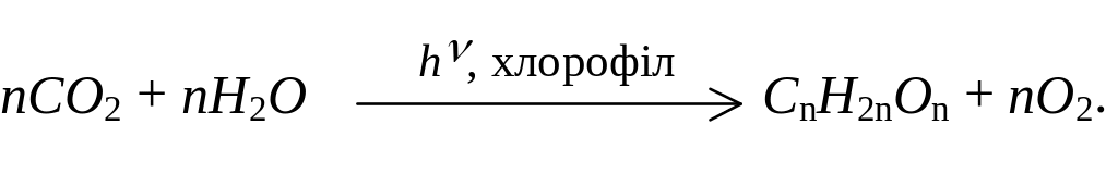 Утворення вуглеводів з СО2 і води в процесі фотосинтезу можна зобразити загальною схемою: