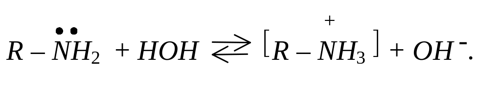 Саме з наявністю неподіленої електронної пари на атомі азоту й пов’язані основні властивості амінів. У водних розчинах аміни приєднують протон води з утворенням гідроксидів амонійних сполук: