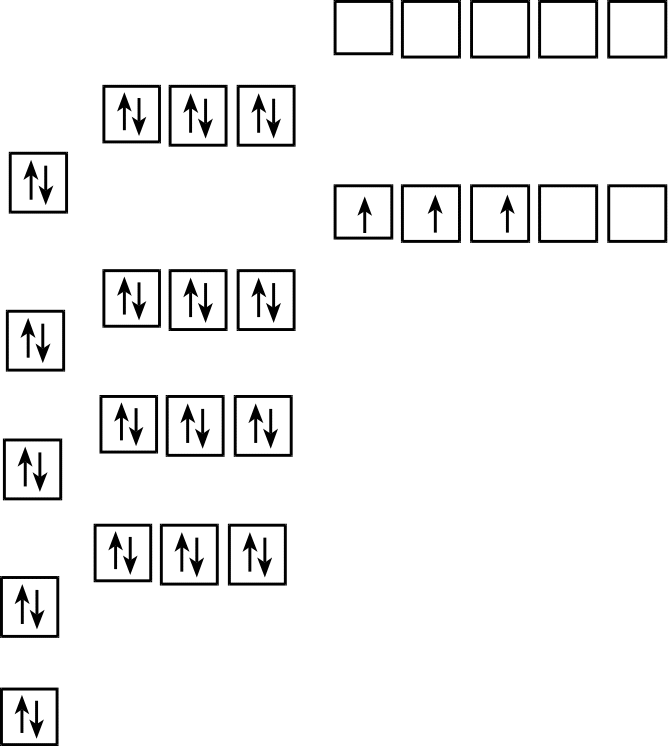Усі підрівні, крім 4d, заповнені повністю, тому неспарені електрони можуть бути тільки на 4d підрівні. Розміщення електронів в межах підрівня здійснюється згідно з правилом Гунда, тобто всього в атомі Nb 3 неспарених електрони (рис.3)