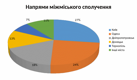Рисунок 1.1 – Діаграма розподілення міжміських перевезень за напрямами у 2013 році