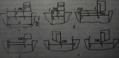 С2.3-сурех/ в) инструменттің қозғалу траекториясында бос жүріс болмайды, сондықтан бұл жоғары өнімділікті қамтамасыз етеді. Кең қанауларды өңдеу үшін (2.3-сурет,в) жоңғының үш кесетін үшы болуы керек. Бүл операция СББ бар токарлы білдектерде «қүлама» сүлбасына сай өңдеумен жүргізіледа (ойып кесетін кескішпен) және ілмек сүлбасы бойынша-кесіп өтетін кескішпен (2.3- сурет,б). Егер қанауда салпыншақ болмаса, онда өңдеу оң жэне сол жақты кесіп өтетін кескіпшен орындалады (2.3-сурет,г).