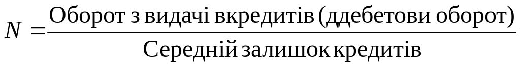 Цей показник характеризує кількість оборотів, що здійснюють кредитні вкладання за певний період, і розраховується за формулою: 1. Оборотність кредитних вкладень