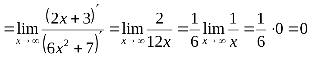 Маємо невизначеність виду . Алгебраїчним перетворенням приведемо цю невизначеність до невизначеності , а потім двічі застосуємо правило Лопіталя: