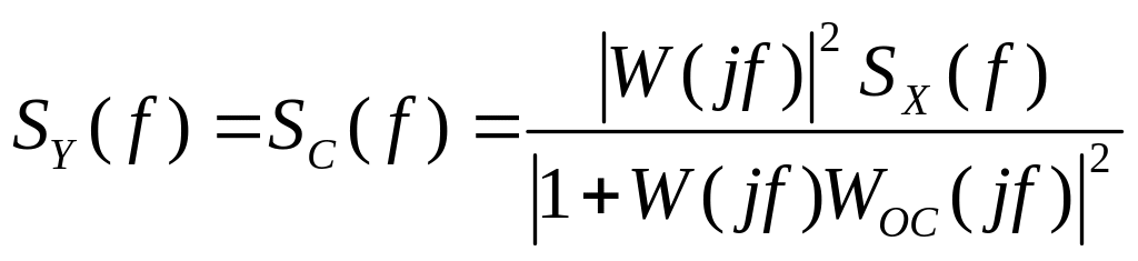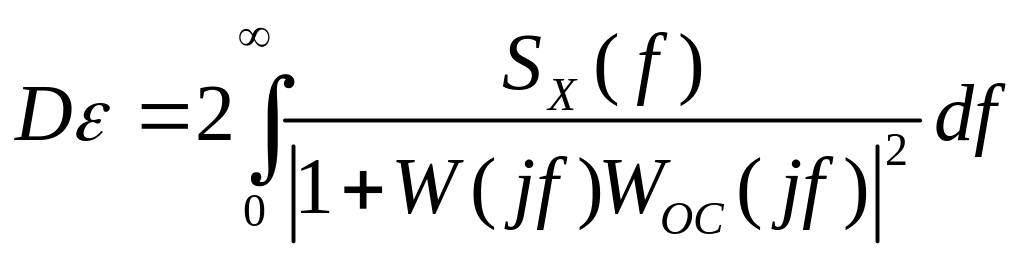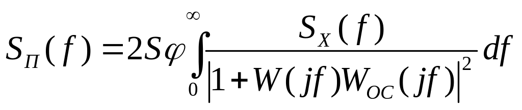 Мы видим, что охват шумящего звена отрицательной обратной связью уменьшает спектральную плотность помехи на его выходе, так как знаменатель подынтегрального выражения всегда больше единицы.
