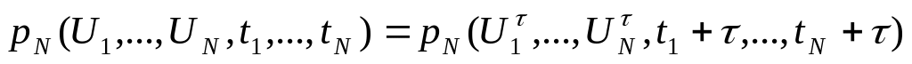 Случайный процесс называется стационарным в узком смысле, если выражения для плотностей вероятности не зависят от начала отсчета времени, т.е. справедливо соотношение: