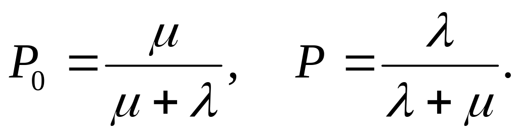 Если система при t=0 находилась в работе, то начальными условиями будут Р(0)=1, Р1(0)=0.