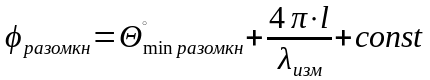 Фаза коэффициента отражения связана с углом поворота петли связи следующим образом