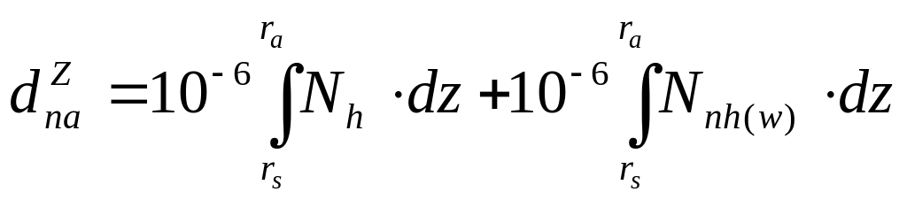 Визначена затримка за формулами (2.24) або (2.25) називається загальна зенітна затримка нейтральної атмосфери, або зенітна тропосферна затримка. Якщо прийняти до уваги показник заломлення, що складається з гідростатичної і негідростатичної (вологої) компонент, то зенітна тропосферна затримка також може бути розділена на дві складові – зенітна гідростатична затримка і зенітна негідростатична (волога) затримка (або суха і волога затримки, якщо беруться за основу відповідні формули індексу показника заломлення). При такому підході, рівняння (2.25) прийме вигляд: