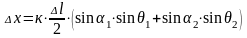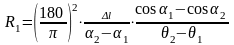 де , – азимутальні кути в радіанах, заміряні в точках a та b.