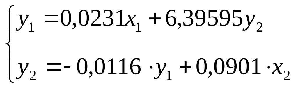 Параметры модели А11, А12, А21, А22 определяются с помощью традиционного МНК. Найдем данные параметры используя функцию Excel Сервис – Анализ данных – Регрессия (при этом необходимо учесть, что в уравнениях отсутствует свободный член). Результаты регрессионного анализа приведенной формы представлены на рисунке 6.1.