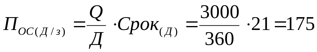 3. Потребность в оборотных средствах приходящаяся на запасы (исходя из с/с и срок оборачиваемости запасов):