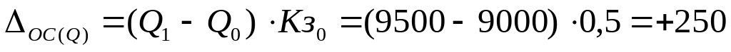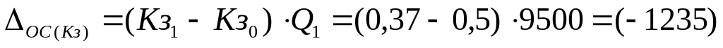 4. Определим изменение оборотных средств за счет изменения коэффициента закрепления: