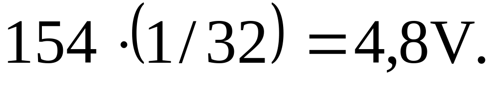 Розмах сигналу по вертикалі VOLT/DIV у каналі СН1 і СН2 визначається в абсолютних екранних одиницях: 000 – відповідає нижньому рівневі екрана або вимірювання відсутні, а 255 верхньому рівневі екрана. У даному прикладі величина 32 відповідає 1V. Тоді виміряне значення 154 у першому каналі при N=2-3 дорівнює