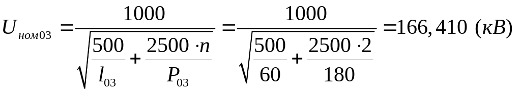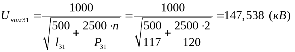 Номинальные напряжения электрических сетей в России установлены действующим стандартом (ГОСТ 721-77*). Для выбора номинальных напряжений на каждом из участков сети воспользуемся формулой, предложенной Илларионовым Г. А. [1]