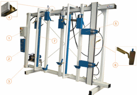 ваймы при больших нагрузках. В стандартной комплектации сборочная вайма оснащёна тремя вертикальными и двумя горизонтальными прессующими блоками. Горизонтальные передвижные прессующие блоки расположены на вертикальной передвижной балке. Гидроцилиндры и опоры вертикальных прессующих блоков регулируются по высоте. Данная конструкция позволяет оперативно изменять размер зоны прессования. Управление работой гидроцилиндров (включая регулировку давления гидростанции) производится раздельно для горизонтальной и вертикальной групп. Цилиндр среднего вертикального прессующего блока при необходимости отключается. Используются гидрокомпоненты ведущих европейских производителей. По запросу сборочная вайма может быть оснащёна фронтальными прижимными балками с ручным прижимом.