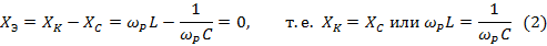 Электрическая цепь в резонансном режиме ведет себя как чисто активное сопротивление по отношению к внешней цепи, то есть напряжение и ток на входе цепи находятся в фазе (совпадает по фазе).