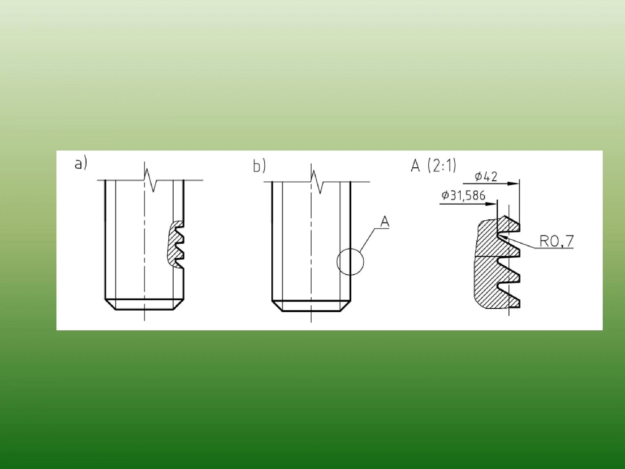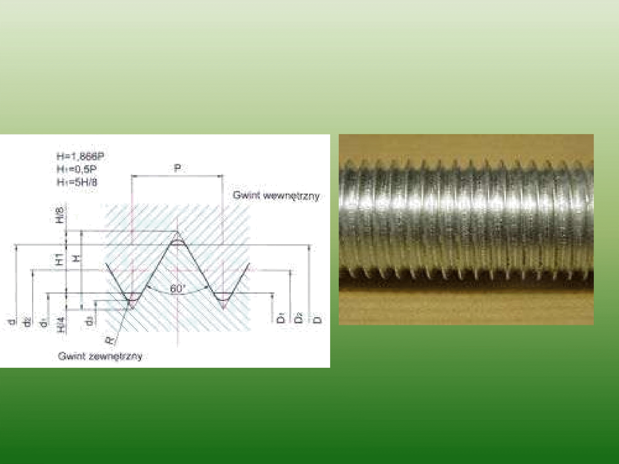 oraz w razie konieczności: skok gwintu, podziałkę, krotnośd, kierunek gwintu, liczba zwojów, klasa tolerancji.