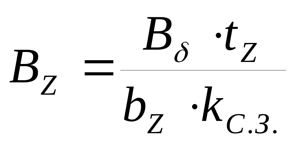 ВZ- допустимі значення індукції в зубі; для зуба з постійним перетином для сталі 1411 ВZ=1,4÷1,6.