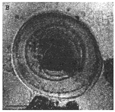 крупные ларвоцисты (диаметром 0,4-0,8 мм) имеют преимущественно неправильную форму; сниженный тургор; хитиновая оболочка неплотно прилегает к фиброзной капсуле, прозрачная, бесцветная, слоистая;