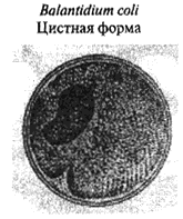 в молодых цистах возможно различить движение балантидия, можно видеть макронуклеус и сократительную вакуоль