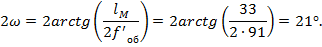 Угол охвата конденсора 2ω0 определим из выражения (3.33)