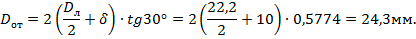Полный диаметр этой линзы с учетом припуска на оправу Δ=2мм составит