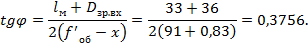 Угол φ между лучом A΄M и линией, параллельной оптической оси, можно определить из выражения