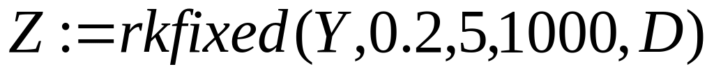 присвоить некоторой переменной значение функции rkfixed, указав в скобках следующие параметры: