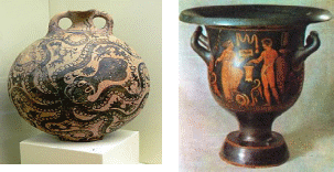 Витвори художньої кераміки з’явились давно. Археологічні розкопки на острові Крит здивували вчених і прихильників мистецтва, бо тоді були віднайдені зразки художньої кераміки надзвичайно високої мистецької якості (рис. 3.1). Якщо попередні зразки кераміки Середземномор’я (горщики, вази) 3000 до н. е. мають прості геометричні узори, то розписи пізніше ускладнюються і наближаються до реальності.