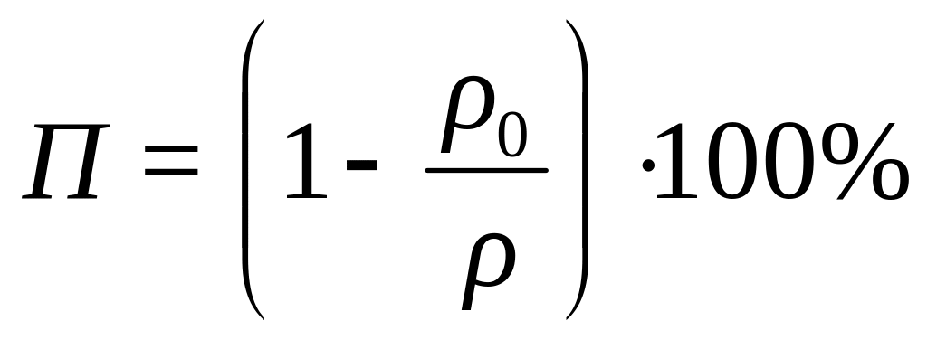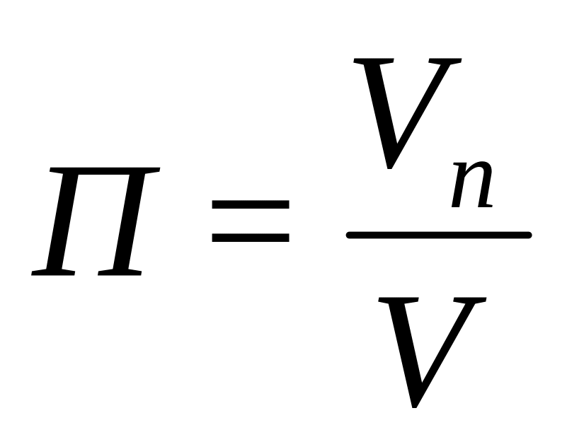 Пористость (П) — это отношение объема пор к общему объему материала: