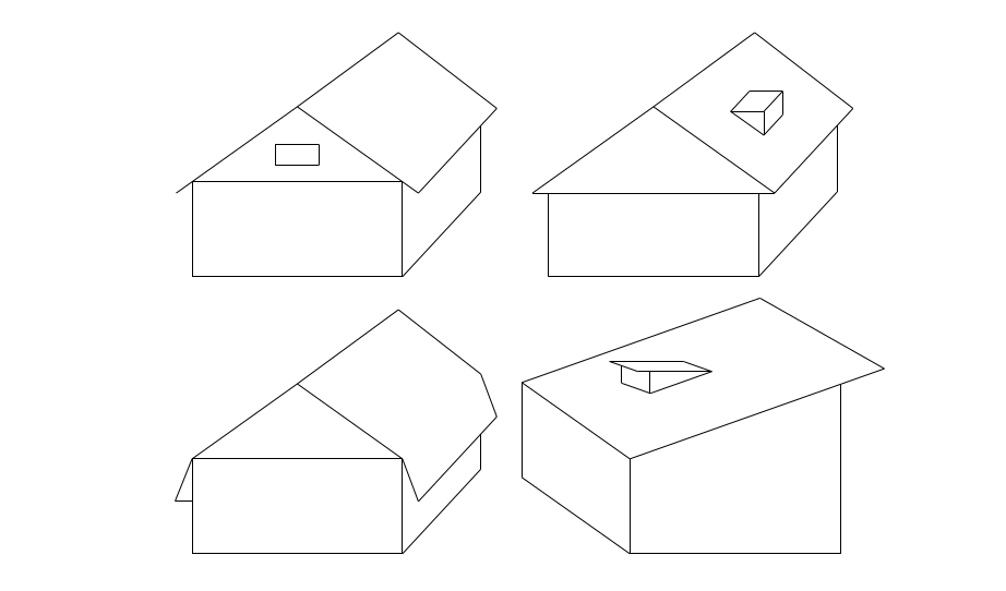 1)- 2 -скатная;2) - 4-скатная (вальмовая);3) – полувальмовая; 4) – 1-скатная.