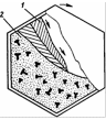 Рис. 6.12. Схема процесса виброабразивной обработки деталей в шестигранном барабане: 1 – активная зона; 2 – «мертвая» зона