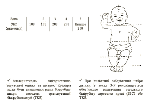 Для оцінки динаміки жовтяниці традиційно використовують модифіковану шкалу Крамера: