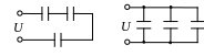 Ємність батареї із трьох однакових конденсаторів, зібраної за схемою рис. А дорівнює