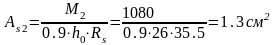 As = N / Rs =42,0 / 22,5 = 1,87 см2