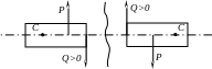 (Это значит, что внешняя поперечная сила, расположенная слева от сечения, направлена вверх, или внешняя сила, расположенная справа от сечения, направлена вниз.)