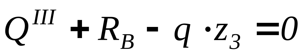 Составляем уравнения равновесия правой части балки, заменив действие отброшенной части внутренними усилиями QIII и :