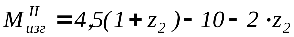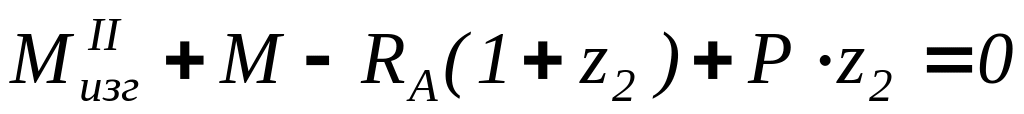 изгибающий момент на II-м участке является линейной функцией от z, следовательно, его эпюра – прямая наклонная линия. Рассчитаем граничные значения для II-го участка (при z2=0 и при z2=1):
