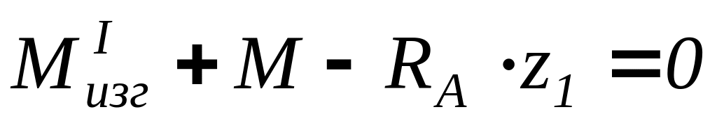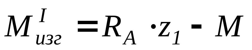 изгибающий момент на I-м участке является функцией от переменной z, причем зависимость линейная, следовательно, ее график – эпюра – прямая наклонная линия. Чтобы ее построить, вычислим значения в двух граничных точках участка: