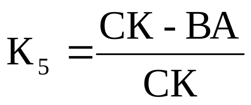 5. Коэффициент маневренности собственного капитала (СК – ВА) : СК |