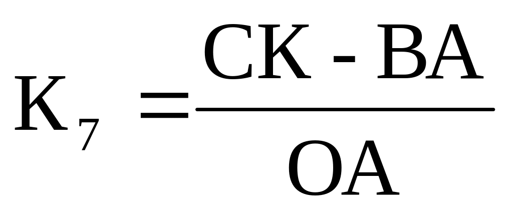 7. Коэффициент обеспеченности собственными оборотными средствами (СК – ВА) : ОА |